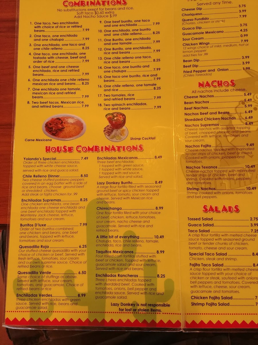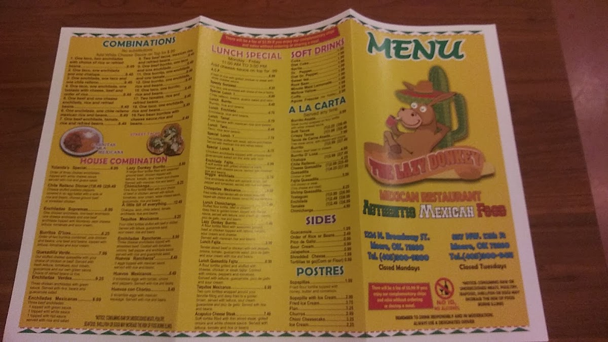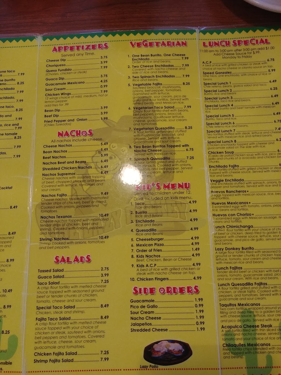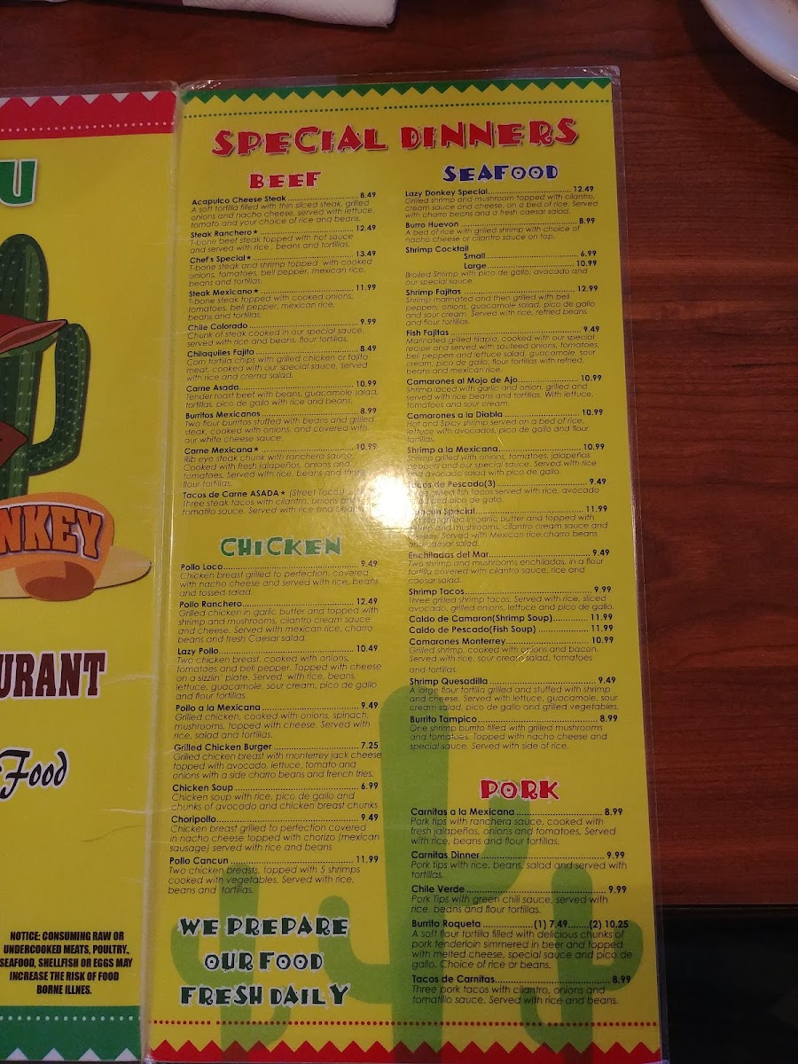 THE LAZY DONKEY MEXICAN RESTAURANT Menu